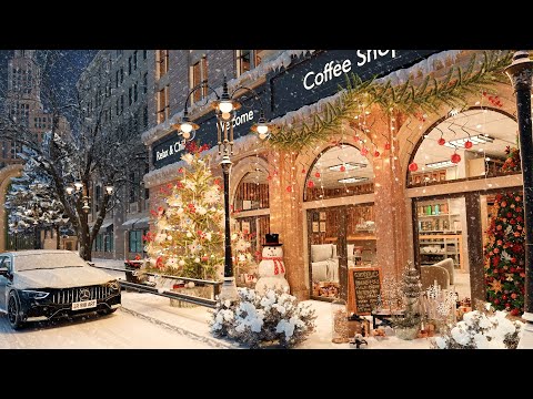 White Snow at Coffee Shop Ambience with Relaxing Guitar Music and Snow Falling for Focus, Study,....